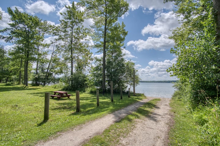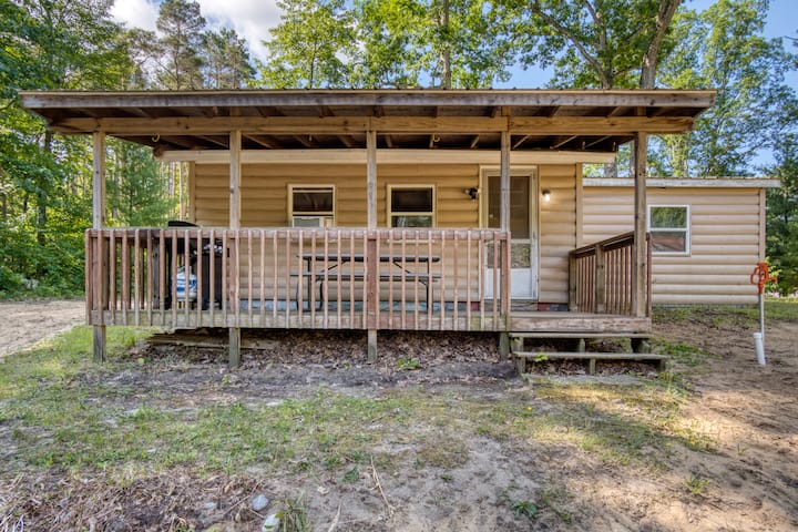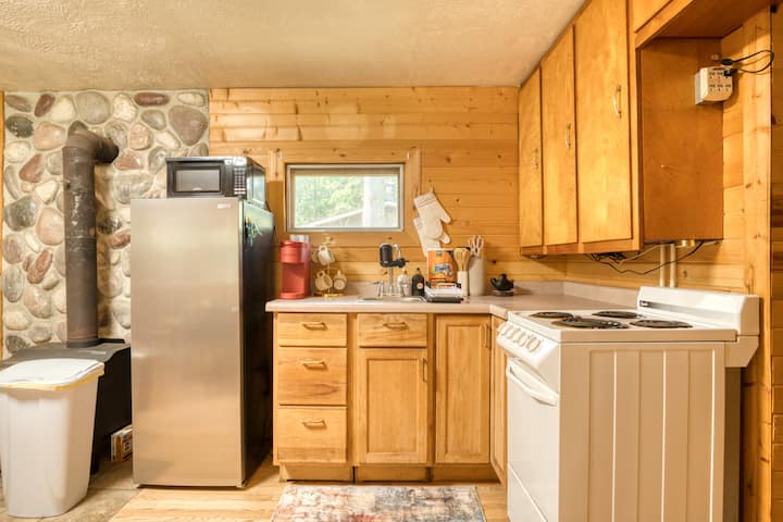 Welcome to our cozy log cabin — the perfect couple’s retreat or family getaway, with access to all-sports Round Lake. Just 25 mins to Ludington & the shores of Lake Michigan! Take a quick 3-minute stroll to our dock to kayak, swim or paddleboard. Back at the cabin, unwind in the backyard w/ a firepit & grill. Head inside to watch a movie on the Smart TV or play card games. When it’s time to sleep, there’s a full bed, plus a pull-down sofa in the living room that’s just right for 1 or 2 kids.