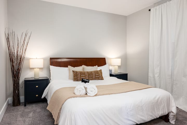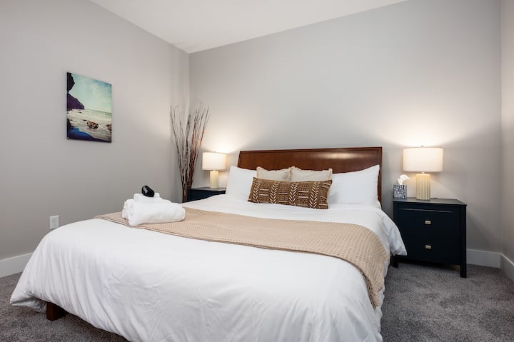Just off the living room, you’ll find a spacious third bedroom, complete with a huge California king bed — the perfect place to rest in luxury after a day of exploring. Downstairs boasts a laundry space with a brand-new washer and dryer.