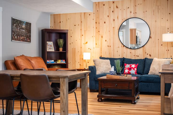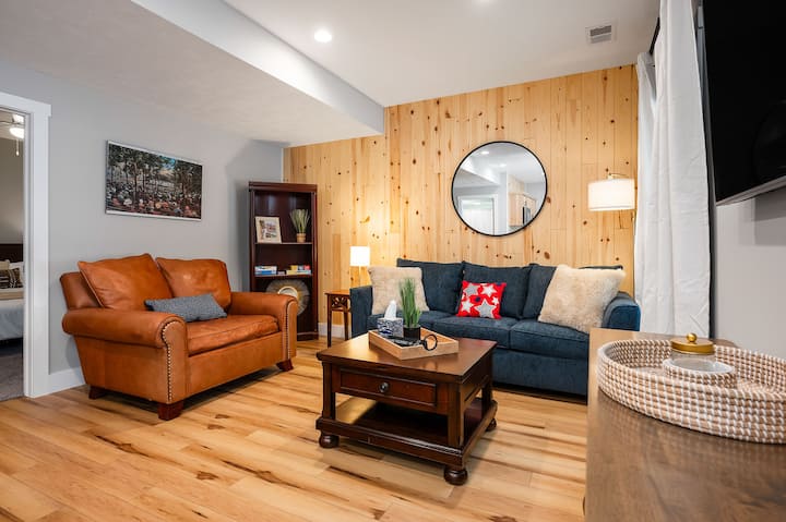 The lower level feels like its own private retreat, with a fully finished “second suite” that walks out to the outdoors. It features a second full kitchen with fresh new cabinets and stunning granite counters, open to a cozy dining area for four. The additional living room is the perfect spot to relax, with a brand new queen-size pull-out Tempur-Pedic sofa for extra comfort.