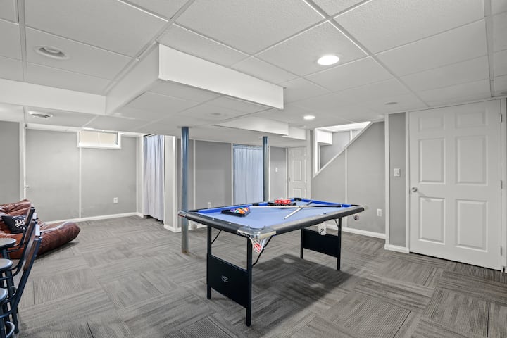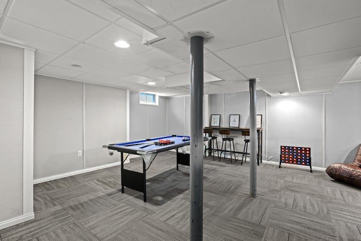 -Lower Level: Fun game room, bar area, and laundry space.