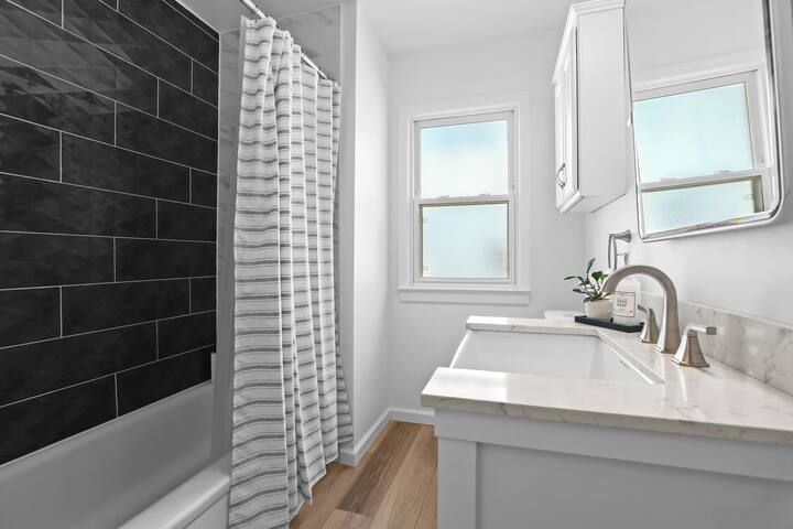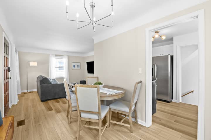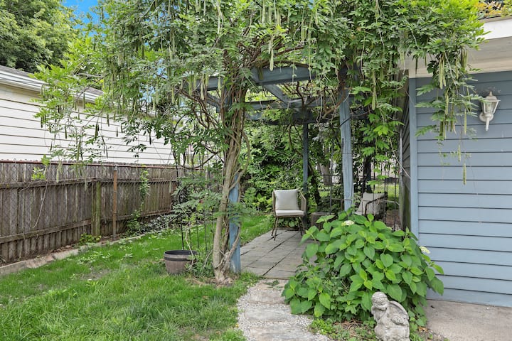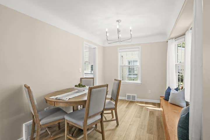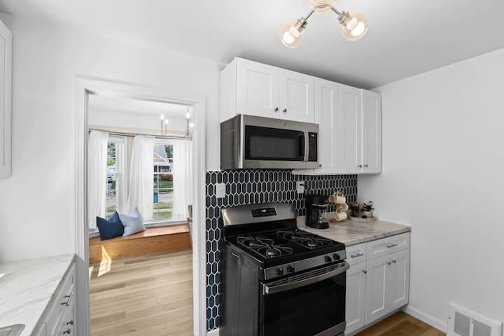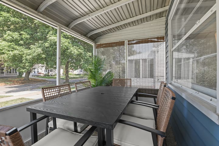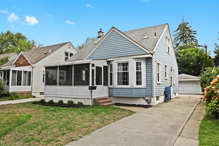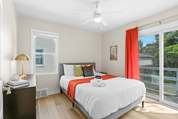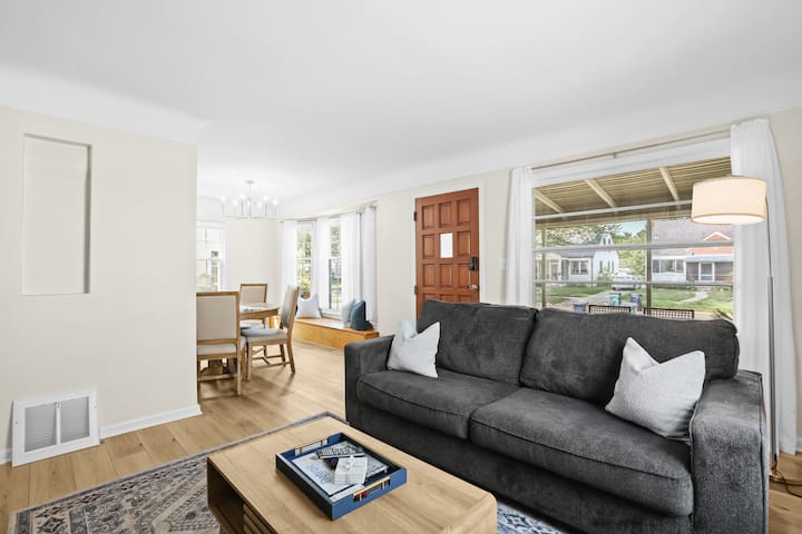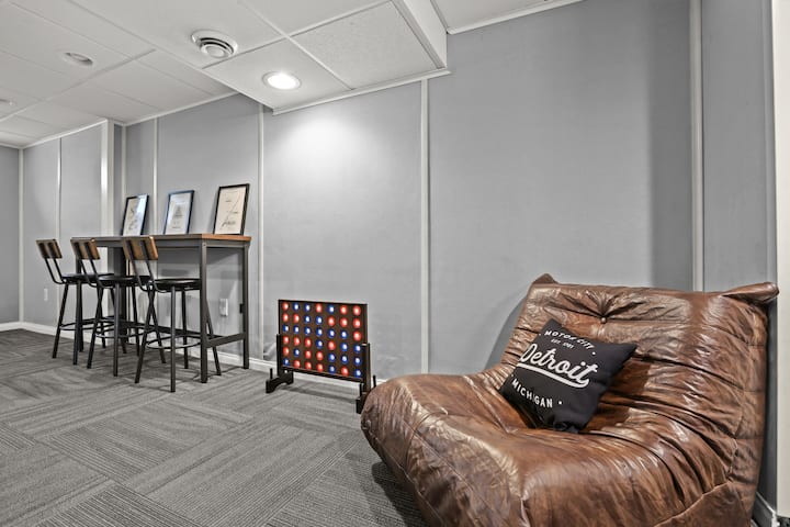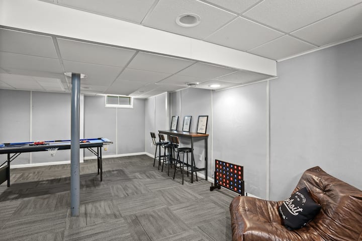 Modern, clean & stylish home just a 5 min drive or 1 mile walk to Downtown Royal Oak! Perfect for business or leisure, this Metro Detroit gem sleeps 7 with 3 spacious bedrooms, cozy living area & game room featuring a pool table, Connect 4 & board games. Cook in the fully stocked modern kitchen or work from the master bedroom desk. Outside, enjoy a covered sunroom with outdoor dining, fenced yard & vine-covered pergola with bistro seating. Ideal for romantic getaways, family stays or work trips!