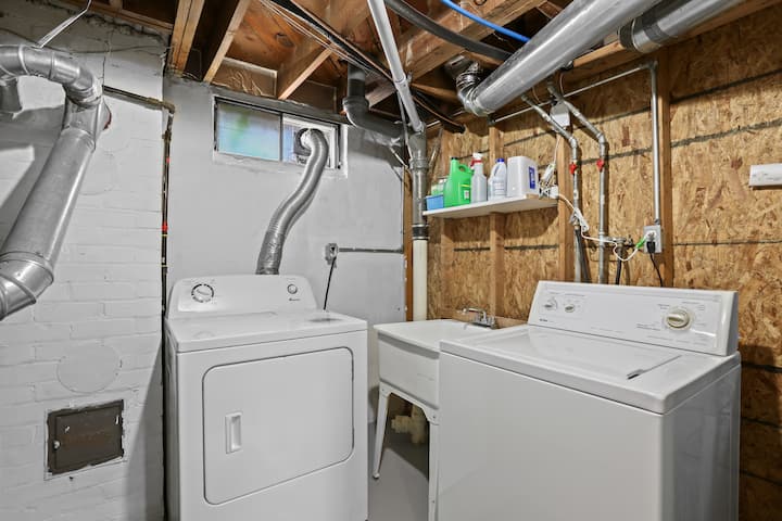 -Free washer and dryer use with laundry soap, ironing board, iron & hampers